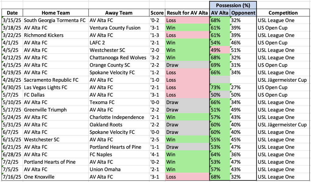 Our co-founder, Brian Kleiban – who is the coach everyone learns from in the Premium program – is currently having a pioneering year leading the newly formed professional USL club AV Alta FC. His first head coach gig at the pro level, btw.